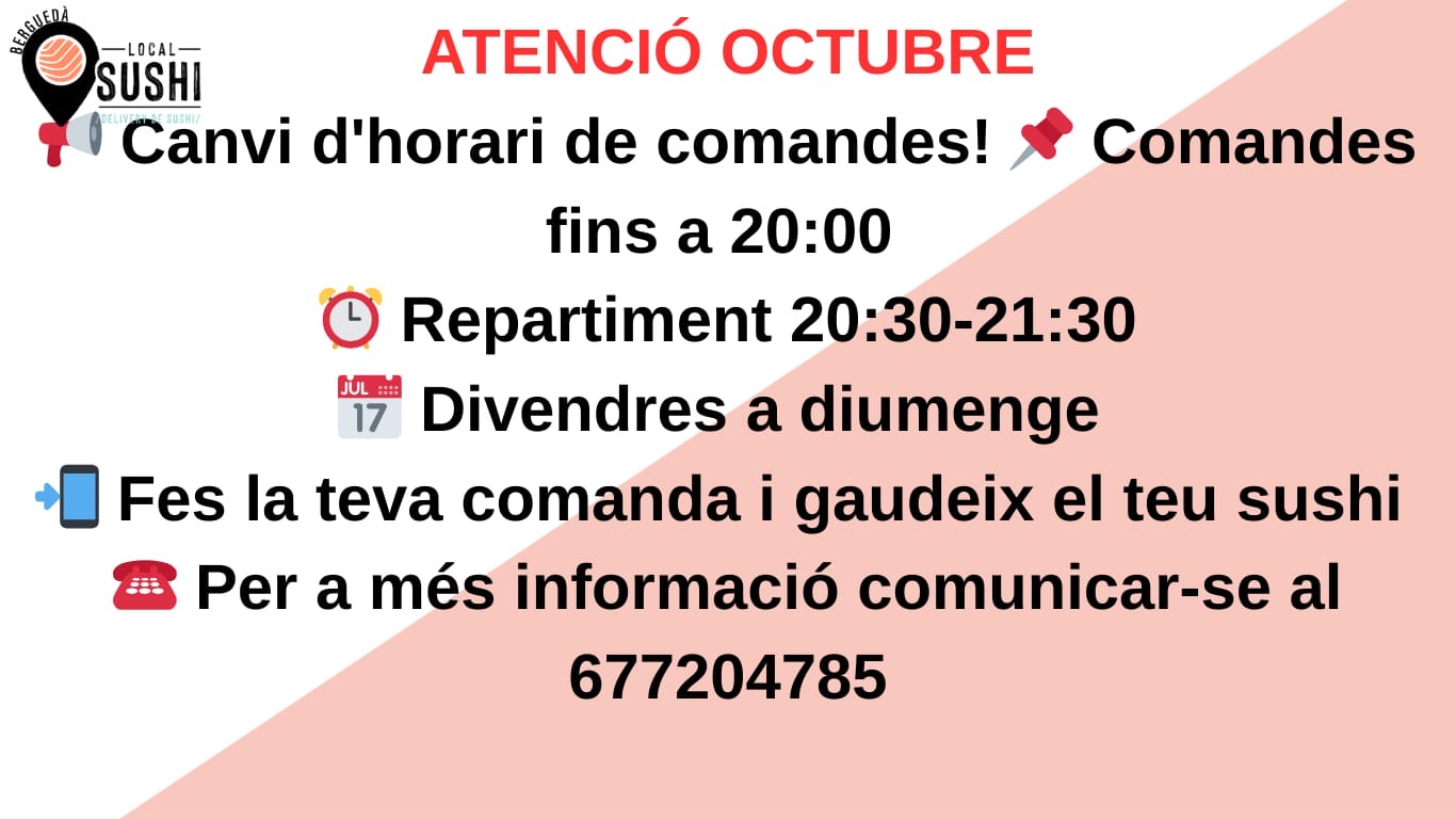 Gaudiu del vostre sushi! Esperem que gaudiu dels nostres productes frescos i de proximitat.